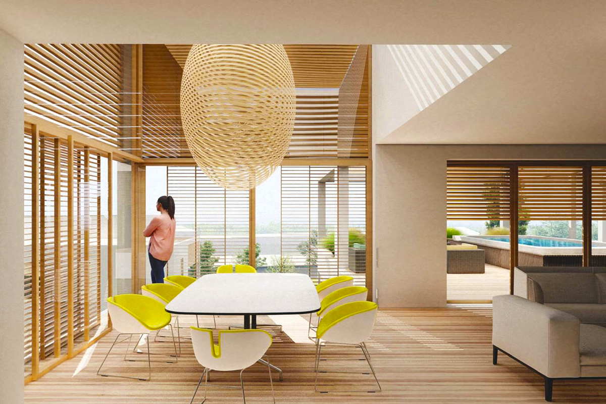 - Fűtés: hőszivattyús rendszer, mennyezet hűtés-fűtés